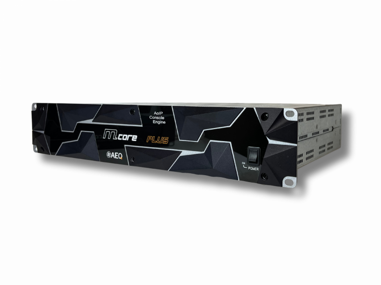 3-unit chassis with 14 slots for inserting input and output modules into its rear panel. It also incorporates general-purpose inputs and outputs such as self-monitoring and talkback microphone, control monitor, studio monitor, CUE, control and studio headphones, and GPIOs. The console’s I/O capabilities can be expanded via NETBOX AEQ modules, increasing the number of mono analog inputs and outputs (or stereo pairs), stereo digital inputs and outputs, mic/line inputs, stereo headphone outputs, and GPIOs.
