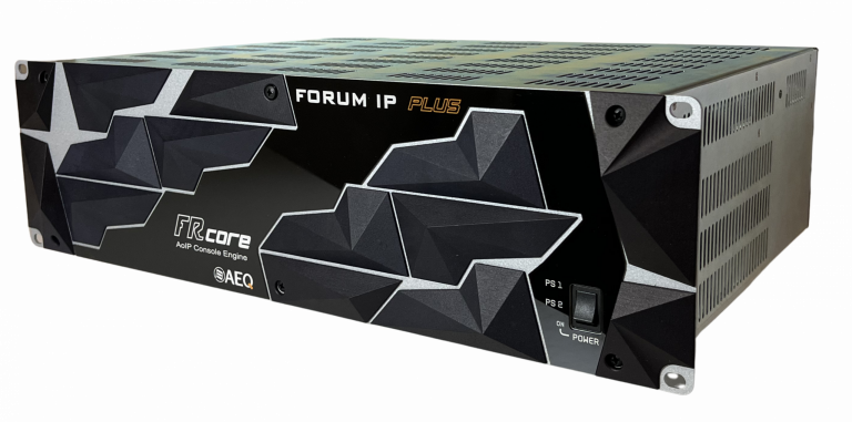 FORUM IP PLUS comes with the FR CORE PLUS modular engine, consisting of 3 rack units with 14 slots for inserting input and output modules into its rear panel. The LITE PLUS version comes with the compact M_CORE PLUS engine, consisting of 2 rack units with fixed connections.