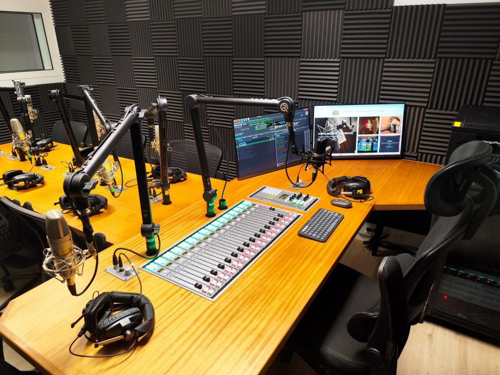 Two recording islands equipped with Rode Rodecaster consoles and Dante ESI22C interfaces were installed, allowing full integration with the audio-over-IP network of the broadcasting station.